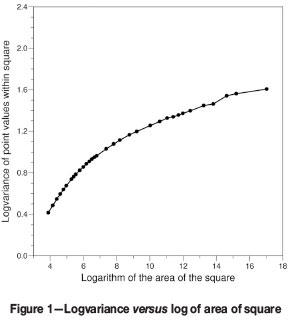 A solution to this problem was found by plotting the average logvariance within square cells against the length of the side of the square. Figure 2 shows the resultant graph for the reef under consideration.