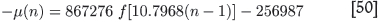 Knowing these constants, we can write the way -µ is expected to vary with the sample number (n - 1):