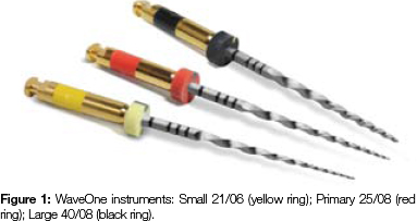 The WaveOne NiTi File System (Dentsply/Maillefer) was introduced to the dental market in 2010. It is a pre-packaged, pre-sterilised, single-use system that is designed to shape root canal systems to a continuously tapering morphology.12,13