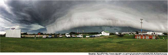 Of course, a picture! And that is what Jannes van Vuuren, an East London dentist did, using his cell phone. Algoia FM has featured the picture which apparently has stimulated a stir amongst those interested in the power and majesty of Nature.. and are we not all in awe when we see those clouds!