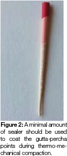 e) a minimal amount of root canal sealer should be used (Figure 2);