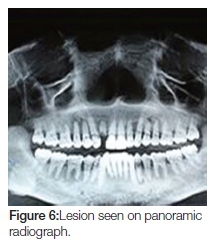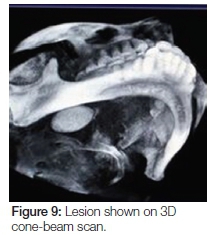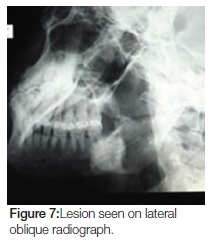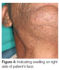 A fifty two year-old male patient presented at the Wits Oral Health Centre complaining of a painful swelling on the right side of his face (Figure 4). His symptoms were of three years' duration. He had previously consulted a medical practitioner who informed him that his skin had reacted to shaving. The patient was treated with numerous courses of analgesics and antibiotics to no avail. The patient then sought treatment at the Wits Oral Health Centre.