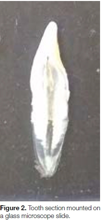 The tooth sections were subsequently mounted on glass microscope slides, embedded in DPX® (from Leica Microsystems)29 and covered with a glass cover slip (Figure 2).