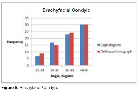 • The mean as well as the median values of the condyle angles from the lateral cephalogram and orthopantomograph do not differ significantly