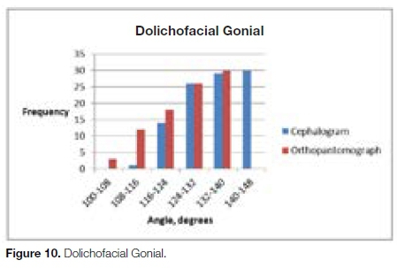 • The mean as well as the median values of the gonial angles from the lateral cephalogram and orthopantomograph differ significantly