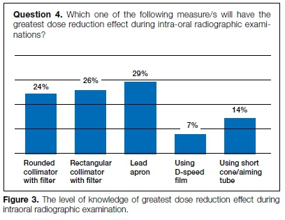 As Question 4 (Fig. 3) was a multiple-choice question, the results of the chosen answers have been additionally presented to illustrate the level of knowledge of greatest dose reduction effect during intraoral radiographic examination. Only 26% of respondents knew that using a rectangular collimator with a Alter helps to achieve the highest dose reduction effect.
