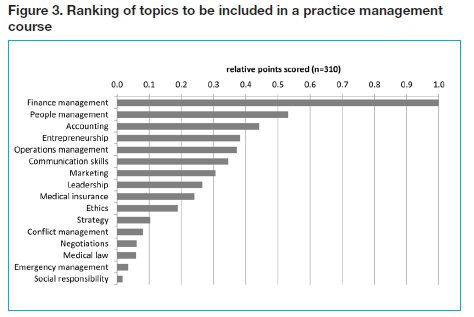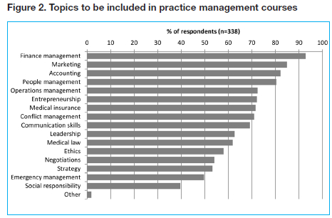 • The most important topics recommended to be included in a practice management course were finance management, accounting, marketing and people management.