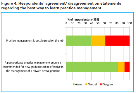 • The majority of dentists suggested postgraduate training would be more valuable to gain management knowledge and skills rather than on-the-job-learning.
