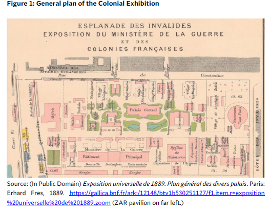 Initiated by the French Consulate in Pretoria as a timely opportunity to help alleviate some of the financial and political uncertainties faced by Johannesburg's mining complex, the strategic participation of the ZAR as part of the Colonial Exhibition served as propaganda tool for endorsing settler colonialism and the subjugation of non-Western societies at France's first Congrès Colonial International. The newly recreated ZAR was presented as a valuable French republican partner and symbol of colonial entanglements between a European settler society and African economies. Celebrating its own revolution, albeit an economic one based on the exploitation of minerals such as gold, diamonds and coal, the ZAR's participation and role in the exposition amplified the supposed connections between Eurocentric notions of industrial progress, settler colonialism and racialisation at the height of the British-dominated 'scramble' for southern Africa.