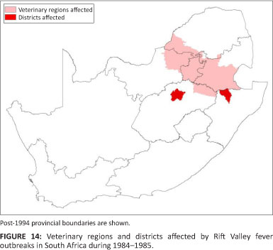 Small outbreaks of RVF were reported from the Natal region and the Highveld region (Division of Veterinary Services 1983b). A disease report by the Division of Veterinary Services (1984a) reported RVF outbreaks during March, April and June 1983.