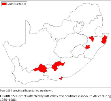 Several outbreaks of RVF were reported by private veterinarians from the Highveld region, but none were laboratory confirmed (Directorate of Animal Health 1981).