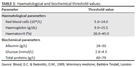 Threshold values used for haematological and biochemical parameters are shown in Table 1 (Blood & Radostits 1989).