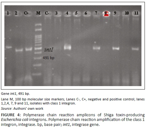 Antibiotic resistance developed in STEC isolates from humans and animals (Van Meervenne et al. 2013). Integrons, which are known to be associated with many antimicrobial resistance genes, were suspected to serve as pools of antimicrobial resistance genes worldwide (El-Sokkary & Abdelmegeed 2015). Class 1 integrons are commonly found in gram-negative pathogens (Maguire et al. 2001).