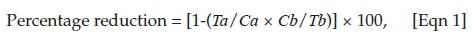 T = parasite count of treatment group.