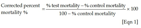 Abbott, W., 1987, 'A method of computing the effectiveness of an insecticide', Journal of the American Mosquito Control Association 3, 302-303. [ Links ]