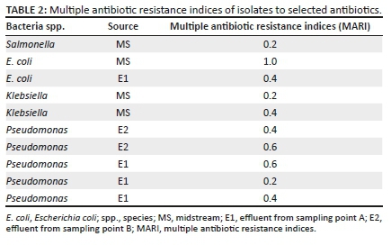 Keywords: antibiotic resistance; multiple antibiotic resistance index; Gram-negative bacteria; abattoir effluent; surface water.