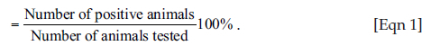 adopted from Cameron and Trivedi (2001) which relates to sensitivity and specificity (Cameron & Trivedi 2001). Variance (Var) for the apparent prevalence (AP) was estimated of variance for the apparent prevalence, AP was used for apparent prevalence, Se for sensitivity of CFT test, and Sp specificity, for serology assays. The calculation of the 95% CI for the true prevalence was performed using the following equation: