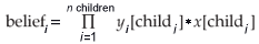 where n children is the number of children the node has, x is the input vector, yi are the vectors previously stored by the spatial pooler, and a[childn] is the part of vector a that is received from the nth child.