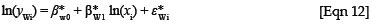 where xi = (1, ln(xi)), ln