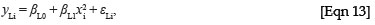 where yLi is the leaf biomass in kilograms, βL0 and βL1 are the regression coefficients for leaf biomass and εLi is the estimation error. It was found that a linear form of the relationship fits the data better than a power equation for leaf biomass, and that a relationship with the square of stem diameter fits better than the unsquared diameter, which can be explained because tree volume should scale with the cross-sectional area of the trunk. (Scholes36 and Chidumayo38 have also reported linear equations for leaf biomass.)