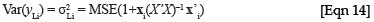 is the predicted value from a new xi value, MSE is the mean square error obtained from the original regression analysis and X is the design matrix of the original regression. In the case of a simple linear regression, the calculation of the variance of a predicted value can be simplified into easily derivable terms from the original regression data. The term X'X can be simplified to