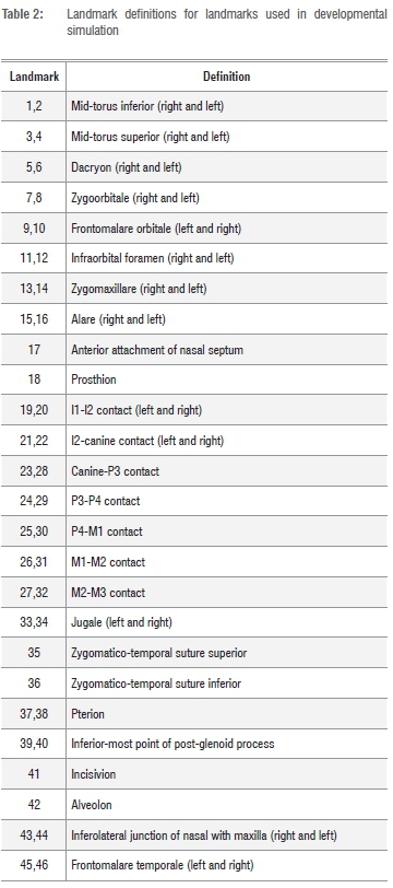 A subset of 32 landmarks across the calvaria, face and palate of specimens was then used for morphometric comparisons between hominin crania and simulated versions of A. sediba individuals (Table 3). Producing this subset was necessary for comparing extant taxa landmarks to landmarks obtainable on the occasionally incomplete fossil specimens selected for analysis. In order to include specimens Sts 71 and KNM-WT 15000, missing landmarks were estimated through reflection of antimeres.