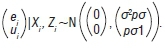 To complete the model formulation, ui and ei are assumed to have a bivariate normal distribution with