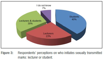 Results shown in Figure 3 further show discordant views on the initiators of STM transactions, with lecturers and students fingered as circumstantial initiators of STM based on the strength of determining currencies of trade, which for the lecturer are the 'higher unearned marks' while for the student the currency of trade is 'sexual favours'.