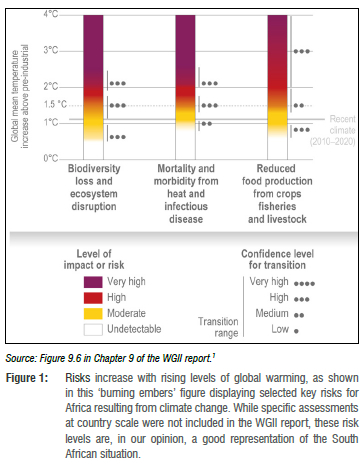 In this Invited Commentary, seven South African authors of the recent Climate Change 2022: Impacts, Adaptation and Vulnerability IPCC Sixth Assessment Report (henceforth the 'WGII report') discuss key findings on climate risk and opportunities for climate-resilient development in South Africa, as identified in this report. The commentary draws primarily on Chapter 9 ('Africa')1, which 'presents the clearest and most comprehensive review of [climate change assessment issues on] the continent ever contained in an IPCC report'2. It also draws on Chapter 6 ('Cities, Settlements and Key Infrastructure') and two synthesis chapters: 16 ('Key Risks Across Sectors and Regions') and 17 ('Decision-making Options for Managing Risks').