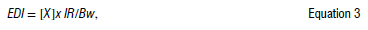 The estimated daily intake (EDI) of the toxic metals was measured in mg/ kg body weight per day21: