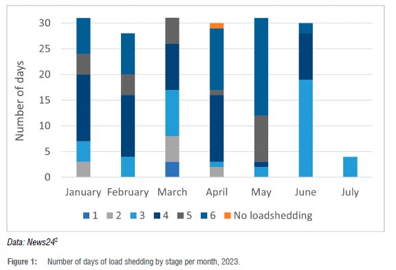 Figure 1 demonstrates the number of days of load shedding per month of 2023.2 The country has barely experienced a day without some stage of load shedding implemented since September 2022, with the average stage in a day continuously rising.