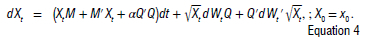 Definition 1. Consider a d x d-dimensional Brownian motion W (W ~ BMd), along with arbitrary matrices Q and M belonging to Md(R) , an initial value x0 within the closure of positive semidefinite real d x d matrices (x0 g Sd+), and a non-negative parameter a. The Wishart stochastic differential equation is represented as: