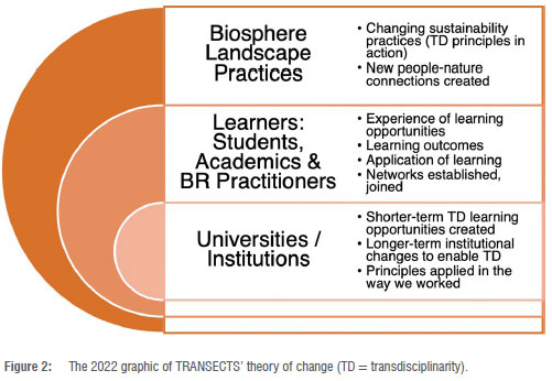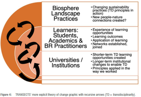 In the discussion below, we reflect on why this conclusion is warranted and pertinent for transdisciplinary and transformative approaches to sustainability education - in relation to TRANSECTS (micro-level) but also to wider theory and system building. We also explain the relationship between the evaluation processes and our learning.