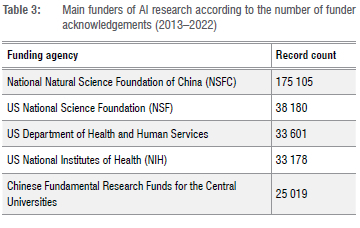Table 3 shows the main funders of AI internationally.