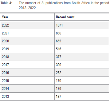 Artificial intelligence in South Africa's academic domain (2013-2022)