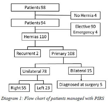 METHOD: The study is a retrospective review of the patients who underwent PIRS (a single port combined percutaneous procedure used to close the internal ring) at our hospital from October 2018 until March 2020. We describe the technique in our setting and review our cohort of patients, demographics, clinical presentation, operative duration and complications