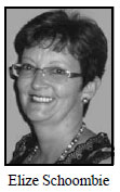 ELIZE SCHOOMBIE studeer aan die Universiteit van die Vrystaat waar sy die grade BMusHons (1987) en MEd (2007) in Opvoedkundige Sielkunde voltooi. Sy volg 'n beroep as opvoeder, lektor en skoolhoof. Haar belangstelling in die emosionele welstand van tieners in die laat-primêre skoolfase lei tot hierdie studie. Sy is tans 'n leerfasiliteerder in Kuns en Kultuur in die Vrystaat. Hierdie leerarea bied uitstekende geleenthede tot kreatiewe aktiwiteite in musiek, dans, drama en visuele kunste; aktiwiteite wat kan lei tot die emosionele welstand van die mens. Sy is reeds vir meer as 20 jaar 'n voltydse orreliste. Kerkorrel-verwerkings uit haar pen is ook reeds gepubliseer.