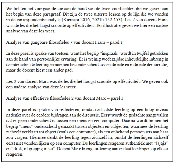 Zowel vanuit de literatuur als vanuit ons net genoemde onderzoek hebben we ontwerpprincipes voor effectieve, reflexieve, filosofielessen geformuleerd (Kienstra, 2016:130):