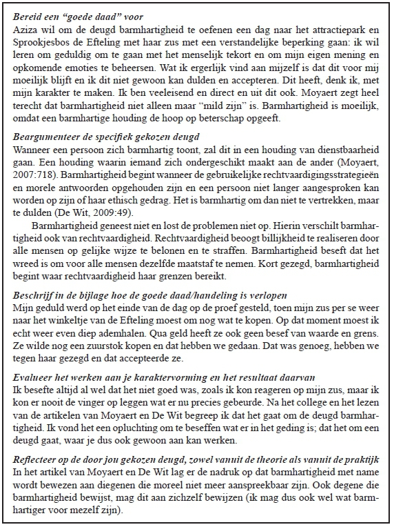 • Reflecteer op de door jou gekozen deugd, zowel vanuit de theorie als vanuit de praktijk.
