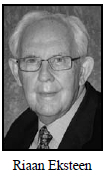 Riaan Eksteen was a member of the South African Foreign Service for 27 years, during which time he held several posts in various capacities within the Foreign Ministry. From 1964-67 he served in the Namibian division, participating in South Africa's court case in the International Court of Justice in The Hague; he also successively held the positions of Head of the UN and Namibian divisions (1973-1976) and Head of Planning (1981-1983). In addition, from 1968-1973, he was stationed at the South African Embassy in Washington, DC; subsequently, he was Ambassador for 12 years at the U.N. New York (1976-1981); Namibia (1990-1991); U.N. Geneva (1992-1995); and Turkey, including Azerbaijan, Kyrgyzstan, Turkmenistan and Uzbekistan (1995-1997). The assignment to Turkey was authorised by Pres. Mandela. He is also a former Director-General of the South African Broadcasting Corporation (1983-1988). He is the author of The Role of the Highest Courts of the United States of America and South Africa, and the European Court of Justice in Foreign Affairs, visiting professor at the Tashkent State University of Law, Uzbekistan and member of the South African Academy for Science and Arts since June 2022. His memoirs, Beyond Diplomacy, was published in October 2022.