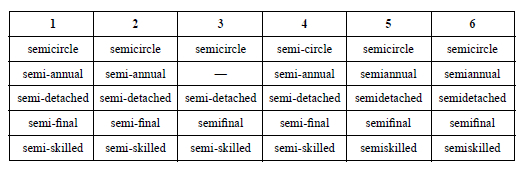 Of Engelse taalpraktisyns of uitgewers weet wanneer semi- gekoppel en wanneer dit vas geskryf moet of kan word, en of hulle elk hul eie stelsel het, weet ek nie. Daarenteen is die Afrikaanse patroon eenvoudig: Voorvoegsels soos semi- (voorvoegsels van Klassieke herkoms: Grieks en Latyn) word vas geskryf aan die woord wat hulle bepaal, behalwe wanneer daar op die verbindingspunt dan 'n vokaalkombinasie ontstaan wat 'n ander klank verteenwoordig, byvoorbeeld e + i, of o + e. Dan kan die skrywer óf 'n deelteken gebruik (die voorkeurvorm), óf 'n koppelteken: sosioëkonomies of sosio-ekonomies; reïnkarnasie of re-inkarnasie. Dit word in reëls 5.6 en 12.2 van die AWS volledig uiteengesit en geïllustreer.