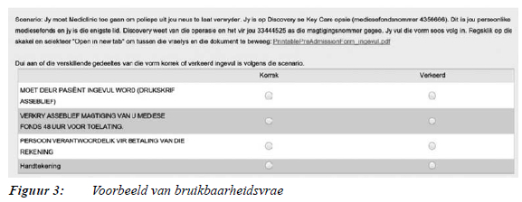 Respondente wat die skakel na die vraelys oopgemaak het, is eerstens gevra om 'n toestemmingsvorm te lees waarna hulle toestemming kon gee om aan die navorsing deel te neem. Hierna moes hulle aandui van watter een van die mediese, regs- of finansiële kontekste hulle die minste ondervinding gehad het ten einde seker te maak dat hulle ' n dokument kry in die konteks waarin hulle die minste ondervinding het. Respondente moes toe 'n nommer van 1 tot 6 kies. Elke nommer is aan 'n spefisieke dokument gekoppel en het verseker dat respondente 'n ewekansige kans gehad het om een van die 18 dokumente wat in die navorsing ingesluit is, te kry.
