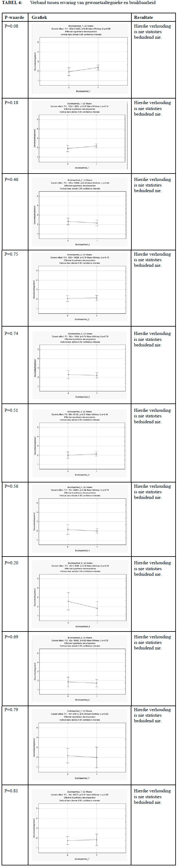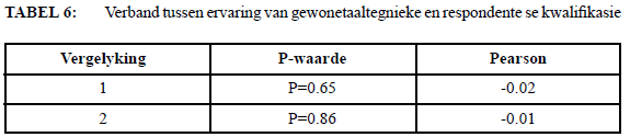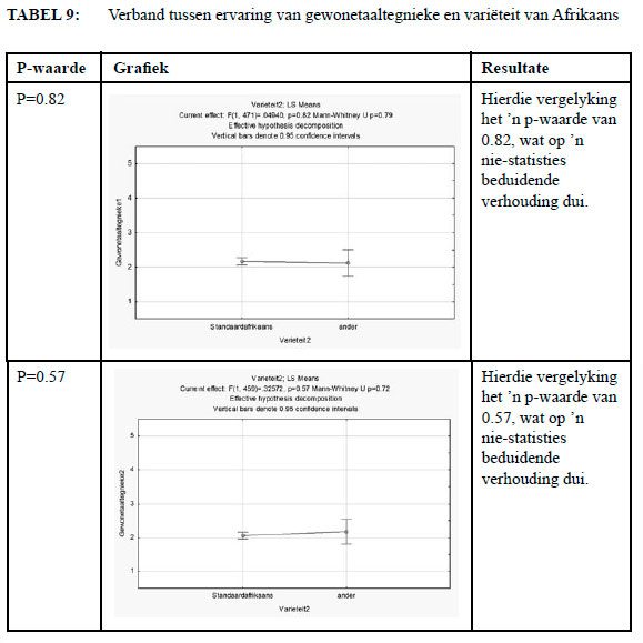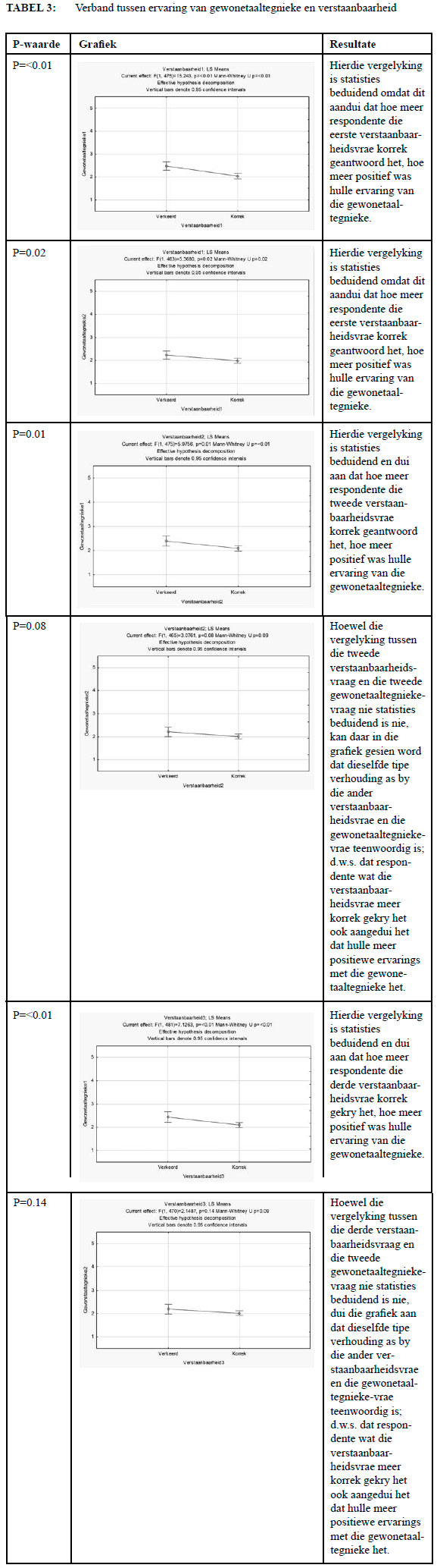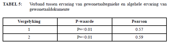 Met behulp van hierdie uitgebreide vergelykings poog ek om te bepaal wat die rol van verbruikers se ervaring van gewonetaaltegnieke op die sukses van 'n gewonetaaldokument is. Daardeur kan ek bepaal of ervaring wel, naas verstaanbaarheid en bruikbaarheid, in ag geneem behoort te word tydens die skep van ' n suksesvolle gewonetaaldokument.