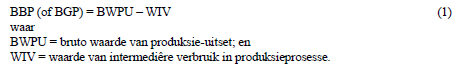 Die produksiemetode beraam die toegevoegde waarde wat die verskillende sektore bydra tot die BBP of die BGP, na gelang van die geval. Die formule wat gebruik word, is soos volg:
