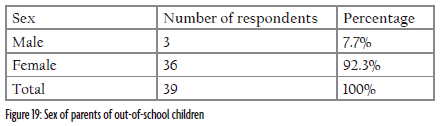 The occupation of the parents also plays a significant role in shaping their children's views towards life, especially the socio-cultural perspective. For instance, the occupational figure of the parents indicates 69.3% of mothers are housewives which is the highest for parents of out-of-school children in comparison to their counterparts in the other group, 17.9% of parents are civil servants, and 12.8% are businessmen/women. In my opinion, the children are cared for and supported by homemakers with limited education and minimal exposure to the advancements of the modern digital age.