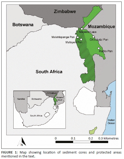 The basis for our discussion is data generated from multiple palaeoecological records from KNP and HiP in South Africa, and Limpopo National Park in Mozambique (PNL [see Figure 1 and Table 1-A1]) (Ekblom & Gillson 2010a, 2010b, 2010c; Ekblom, Gillson & Notelid 2011; Ekblom et al. 2012; Gillson 2015b; Gillson & Duffin 2007; Gillson & Ekblom 2009, 2009b). The period discussed here, the last ca. 6000 years, has experienced both periods of warming and cooling combined with shifts in rainfall (Scott 2016; Scott et al. 2012). The time period covers the end of the mid-Holocene warming 4000 years ago when there was an increase in rainfall in the summer rainfall region. This was followed by a period of variable but overall cooler and drier conditions. Overall wetter conditions took place ca. 1200-800 years ago associated with globally warmer climate (sometimes referred to as the medieval warming) (Holmgren et al. 2003; Humphries, Green & Finch 2016; Lee-Thorp et al. 2001; Neumann, Botha & Scott 2014; Scott & Lee-Thorp 2004; Scott et al. 2012; Scott 2016). Shorter cool-dry events took place in AD 1100, 1350, 1450 and 1500 interspersed with periods of higher rainfall. A prolonged trend of cool-dry conditions took place after AD 1600, especially severe at AD 1700, with a return of more rainfall only 200 years ago (Holmgren et al. 2003, 2012; Lee-Thorp et al. 2001; Scott et al. 2012; Sundqvist et al. 2013; Woodborne et al. 2015, 2016). Although the dynamics of these changes, and if these climate shifts are analogous to future climate shifts, are still debated (Fitchett et al. 2017), the knowledge of the scale and rate of vegetation changes are important to understand for informed management decisions.