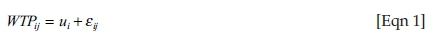 where WTPij represents the jth respondent's WTP and i = 1, 2, denoting the first and the second questions as the means for the first and second responses. As before, setting u1 = X'ijb allows the means to be dependent upon the characteristics of the respondent. Following Haab and McConnell (2002), the jth contribution to the likelihood function is given as: