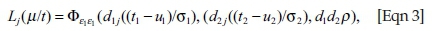 where YY = 1 for a 'yes-yes' answer, 0 otherwise, NY = 1 for a 'no-yes' answer, 0 otherwise and so on. This is the bivariate discrete choice model. Assuming normally distributed error terms with mean zero and respective variances σ1 and σ2, then WTP1j and WTP2j have a bivariate normal distribution with means µ1 and µ2, variances σ1 and σ2 and correlation coefficient ρ. As a result, the jth contribution to the bivariate probit in Equation 3 is the likelihood function for the bivariate probit: