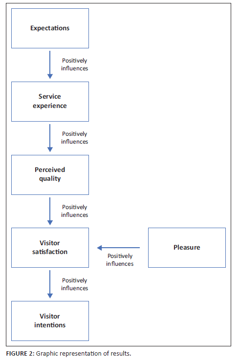 Ali et al. (2016) found that a relationship exists between service experience and emotions. These emotions could include elements such as joy, love and positive surprise (Prayag et al. 2017). The higher the levels of experience and emotions the visitor feels, the greater the levels of satisfaction (De Rojas & Camararo 2008).