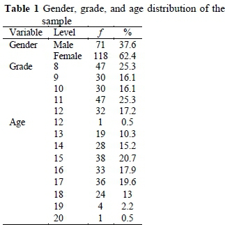 The sample in this study, as indicated in Table 1, consisted of learners from a high school in the Johannesburg area. As the school and the learners participated voluntarily, non-probability convenience sampling was used. The sample consisted of 276 learners from Grades 8 to 12 who were, at the time, using tablets in the classroom. Just over half of the learners in the sample were female and the majority were in Grades 8 and 9. Learners ranged from 12 to 20 years of age with a mean age of 15.6 years (SD = 1.7).